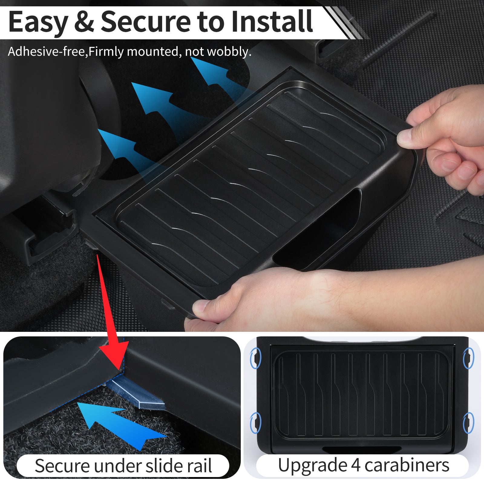- 【Easy to install】Tesla model y rear seat center console organizer's back with Velcro strip, just insert it into the second-row seats, easy to install without any tools